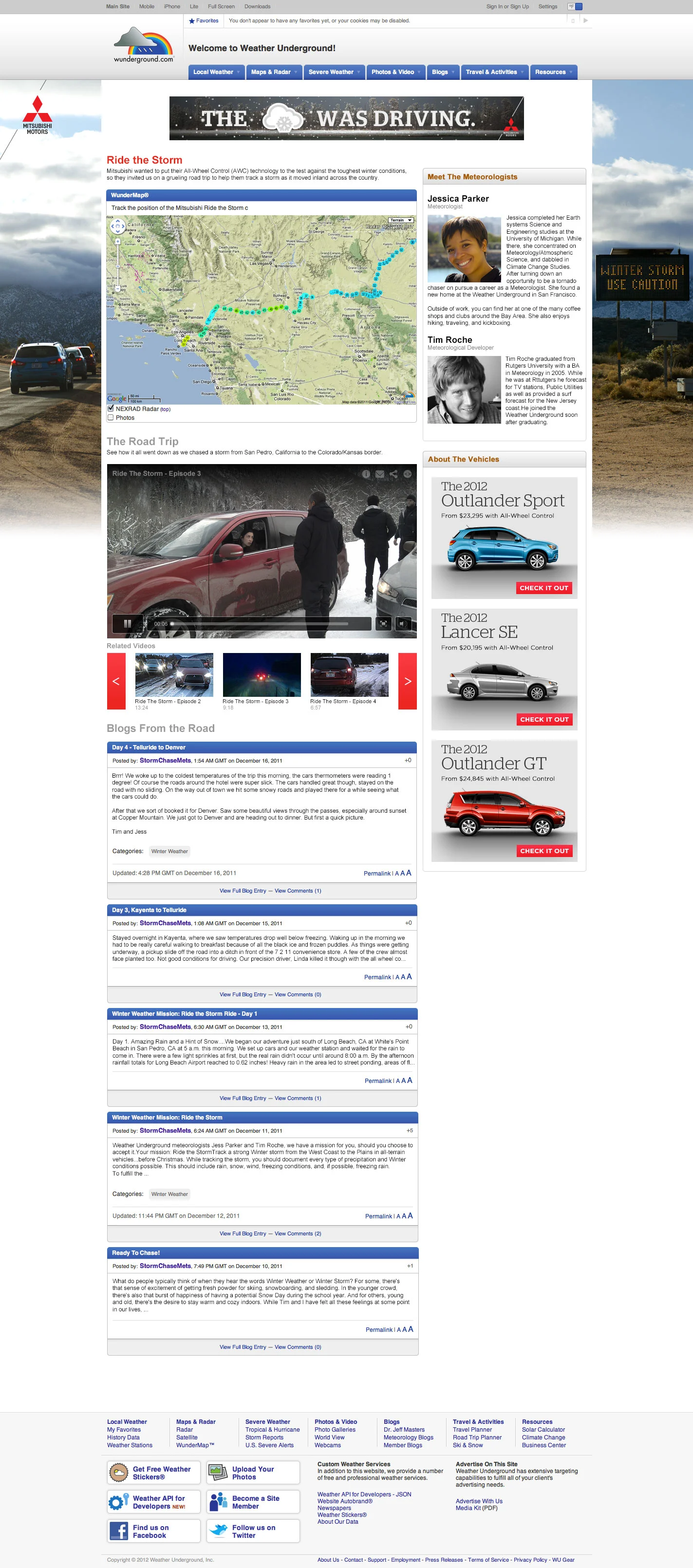 Embedded in the team at Possible Worldwide we developed the digital strategy for Mitsubishi Cars, Winter Campaign. This included a partnership with the brand's traditional agency, for concept of exclusive content shot while on the road of the broadcast commercial, Ride the Storm. The shooting documented five days of photography and video, to build the story of vehicle performance in winter weather.